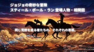 ※画像はAI生成による編集・再構成イメージです。 原作『スティール・ボール・ラン ジョジョの奇妙な冒険』(©荒木飛呂彦/ジョジョの奇妙な冒険 SBR 製作委員会)公式サイト掲載画像を参考にしています。 アニメ『スティール・ボール・ラン ジョ...