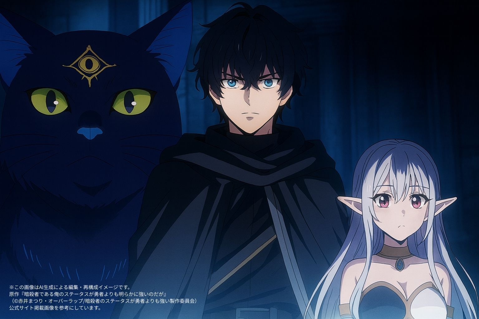 「暗殺者である俺のステータスが勇者よりも明らかに強いのだが」第1話を観て、異世界転移ものながら“影が薄い主人公”が“勇者より明らかに強い”というギャップがしびれる形で描かれていました。