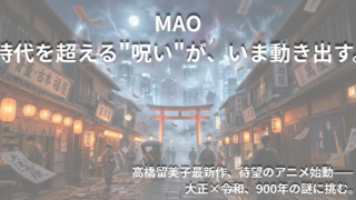 高橋留美子先生の最新作『MAO』が、いよいよ2026年4月4日(土)よりNHK総合でアニメ放送をスタートします。『うる星やつら』『らんま1/2』『犬夜叉』と、数々の名作を生み出してきた高橋留美子ワールドの最新形が、ついに映像として動き出す瞬...